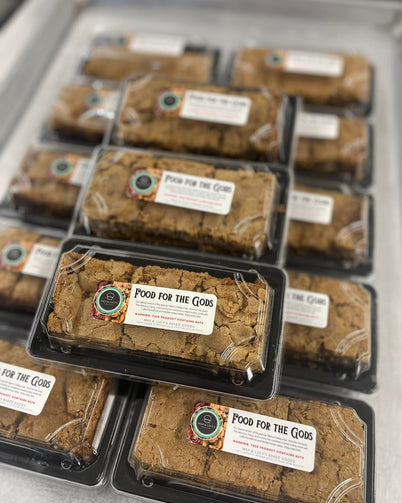 Embark on a divine culinary journey with Max and Lucy's Food for the Gods. This heavenly treat is a true indulgence, skillfully crafted to tantalize your taste buds. Each morsel embodies the rich, buttery goodness of dates, walnuts, and brown sugar, resulting in a chewy, caramel-like texture that's irresistibly delicious.